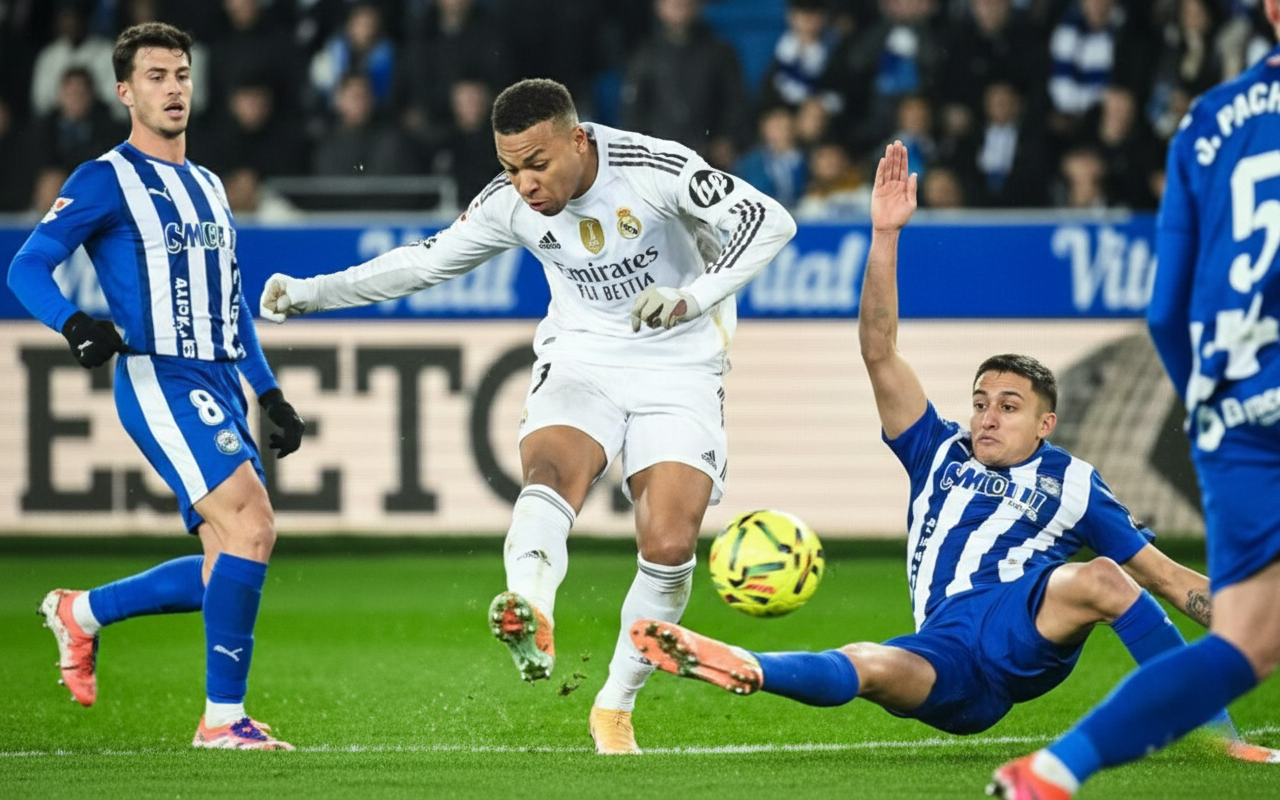 \nيا جماعة، الكورة مش بس 90 دقيقة، دي حكايات ودراما بنعيشها لحظة بلحظة. وأكبر مثال على ده اللي حصل أول أمس في إقليم الباسك، لما كان ريال مدريد على وشك يقع في فخ فريق منظم وشرس زي ديبورتيفو ألافيس. لكن الأبطال، اللي اتعودنا منهم على الروح دي، قدروا يخرجوا من عنق الزجاجة بانتصار صعب، لكنه ثمين جداً، بنتيجة 2-1 في الجولة الـ 16 من الليجا.
