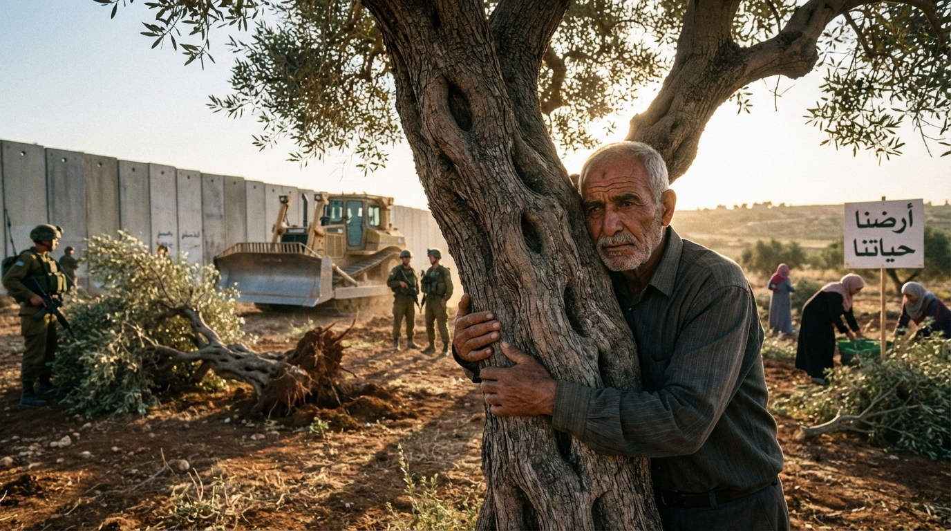 \nفي قلب الأرض الفلسطينية، تقف شجرة الزيتون كرمزٍ للصمود والتجذر. ورغم ما تتعرض له من اعتداءات متكررة، فإنها تواصل إعطاء ثمارها، لتصبح رمزاً لاحتفاء الشعب الفلسطيني بتاريخه وأرضه. الاقتلاع الأخير لـ 1608 شجرة في أسبوع واحد هو مجرد فصل جديد في قصة كفاح طويلة.